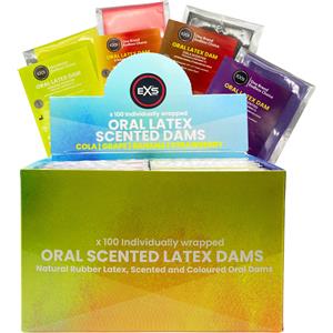 EXS Dighe Orali in Lattice Profumate - 100 Pezzi, Ultrasottili e Setose con Fragranze di Fragola, Banana, Cola e Uva