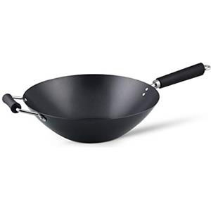 Ken Hom Excellence Wok Antiaderente 35 cm in Acciaio al Carbonio - Compatibile Induzione, Lavabile in Lavastoviglie, 5 Anni di Garanzia