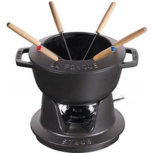 STAUB Set Fonduta Gourmet Nero, Ø 18 cm, 1,6 L, con 6 Forchette - Adatto per Fonduta di Formaggio, Cioccolato e Carne