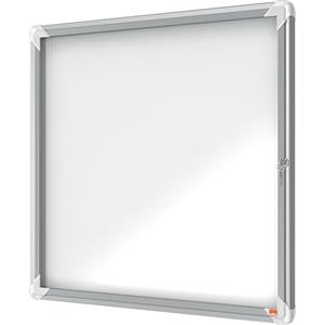 Nobo Bacheca Magnetica per Esterno con Serratura, 9 x A4, Bianco, Anta Battente in Vetro di Sicurezza, Resistente all'Umidità
