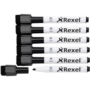 Rexel Pennarelli Magnetici Cancellabili a Secco Neri con Punta Fine - Confezione da 6 Pezzi