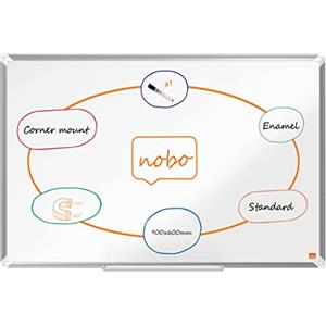 Nobo Premium Plus Lavagna Magnetica Smaltata 900x600 mm con Cornice in Alluminio e Vaschetta Porta Accessori