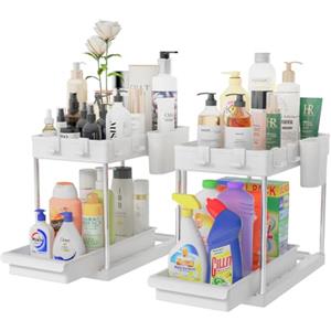BAKAJI Set 2 Organizer Sottolavello Bianco per Bagno e Cucina con Cassetto Scorrevole e 2 Ripiani Salvaspazio