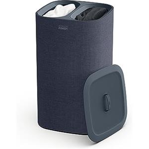Joseph Joseph Tota Cesto Portabiancheria 90L con Coperchio, 2 Scomparti Separati e Sacchi Rimovibili in Cotone - Nero/Blu Scuro