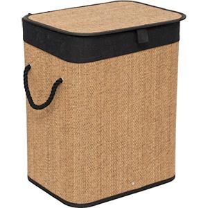 5five Cesto Portabiancheria 60L in Bambù e Tessuto - Nero/Marrone