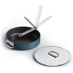 Joseph Joseph Space Padella 20cm con Manico Pieghevole in Acciaio Inossidabile, Ceramica Antiaderente Blu, Compatibile con Induzione