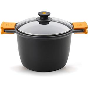 BRA Efficient Pentola 20 cm in Alluminio con Rivestimento Teflon Platinum Plus, Coperchio in Vetro e Manici in Silicone, Lavabile in Lavastoviglie, Compatibile con Induzione e Gas