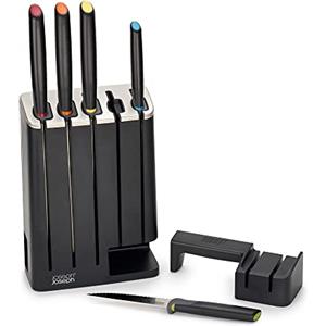 Joseph Joseph Elevate Set di Coltelli da 5 Pezzi con SlimBlock e Affilacoltelli Estraibile - Acciaio Inossidabile Giapponese
