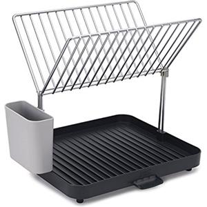 Joseph Joseph Y-Rack Scolapiatti Compatto Grigio con 2 Ripiani, Porta Utensili e Drenaggio Integrato