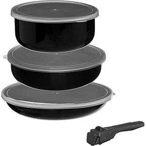 FIVE Batteria da Cucina in Alluminio Pressato con Utensile Rimovibile - 2 Padelle, Casseruola e 3 Coperture