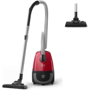 Philips 2000 Series FC8243/09 Aspirapolvere a Traino 750 W, Sacchetto per Polvere, Capacità 3 L, Filtro per Allergia, Colore Nero/Rosso