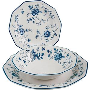 Churchill Servizio Tavola Rose Blue - Set 18 Pz in Terracotta Bianco con Decoro Blu, Lavabile in Lavastoviglie e Idoneo al Microonde