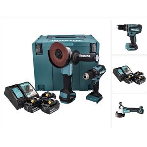 Makita DLX2334J - Kit combinato 18 V con DHP485, DGA504, 3 batterie da 3,0 Ah, caricabatterie DC18RC e valigetta MAKPAC 4