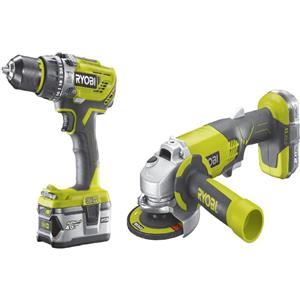 Ryobi Kit Trapano Avvitatore a Percussione e Smerigliatrice Angolare R18PDAG-242S con 2 Batterie 18V e Borsa Morbida