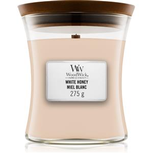 WoodWick Candela Profumata White Honey 85 g - Fragranza Accogliente con Note di Fiori d'Arancio, Orchidea Vaniglia e Toffee Tostato