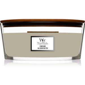 WoodWick Candela Profumata Ellisse Fireside 453 g - Fragranza di Ambra, Muschio e Vetiver con Stoppino HEARTHWICK® FLAME