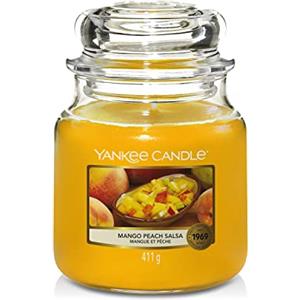 Yankee Candle Mango Peach Salsa - Candela profumata in giara media 411 g con fragranza di mango e pesca, durata fino a 75 ore