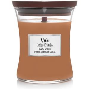 WoodWick Candela Profumata Santal Myrrh 275 g - Media, Colore Marrone, Stoppino in Legno, Fragranza Legnosa