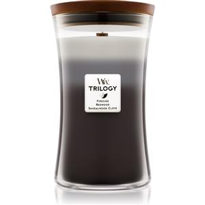 WoodWick Trilogy Large Hourglass Candela Profumata 610 g con Stoppino Scoppiettante - Fragranze Caminetto, Sequoia e Aroma di Sandalo, Fino a 130 Ore