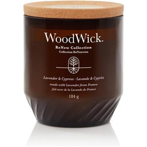 WoodWick Candela Profumata Media Lavender & Cypress - 181g/184g, Cera di Cocco e Soia, Stoppino Scoppiettante, Ingredienti Biologici