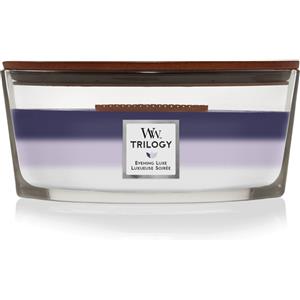 WoodWick Trilogy Evening Luxe Candela Profumata Ellisse 453,6 g - Fragranze Hinoki Dahlia, Lavender Spa e White Teak