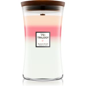 WoodWick Trilogy Blooming Orchard Ellisse Candela Profumata 453,6 g - Fragranze Yuzu Blooms e Melon & Pink Quartz
