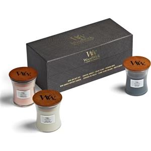 WoodWick Mini Jar Set Regalo 3 Candele Profumate - Fireside, White Teak, Sand & Driftwood - 3x85 g