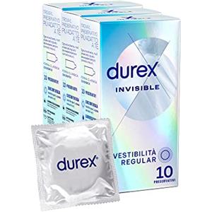 Durex Invisible Extra Sottile 3 pz - Preservativi Ultra Sensibili, Lubrificati e Dermatologicamente Testati
