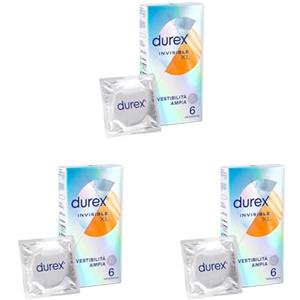 Durex Invisible Preservativi Ultrasottili (0.05 mm) ad Alta Sensibilità XL, Extralarge, 6 Profilattici (Confezione da 3)