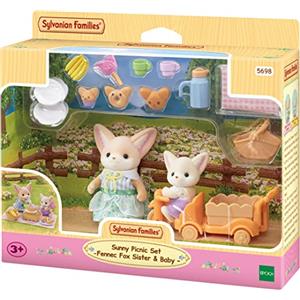 Sylvanian Families 5698 Set Picnic al Sole con Sorella e Bebè Volpe Fennec - Include Carretto e Accessori da Picnic