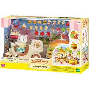Sylvanian Families 5757 Chiosco Hamburger - Set da Gioco con Bicicletta e Figura del Padre Gatto Latte