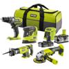 Ryobi Kit Utensili a Batteria: Trapano Avvitatore, Smerigliatrice, Levigatrice e Seghetto con 2 Batterie 18V