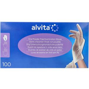 ALVITA Guanti in Vinile Senza Polvere Taglia S - 100 Pezzi, Alta Resistenza e Sensibilità, Bordati e Ambidestri