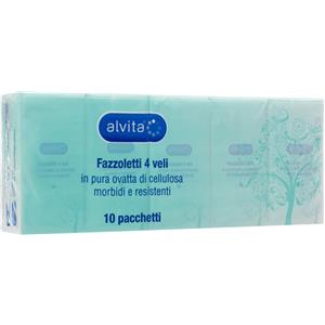 Alvita Fazzoletti di Carta Morbidi e Resistenti - 6 Pacchetti da 10 Pezzi, 4 Veli in Pura Ovatta di Cellulosa