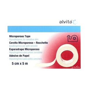 Alvita Cerotto Microporoso Ipoallergenico in Rocchetto 5cm x 5m - Nastro Sintetico Permeabile in Prodotti Salute