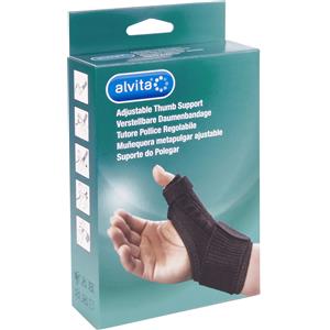 Alvita Tutore Pollice Regolabile Nero Taglia 1 (12-19 cm) - Stabilizzazione e Supporto per Infortuni