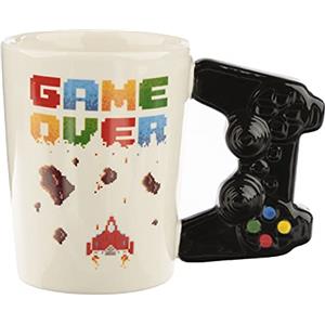 Puckator Game Over - Tazza in ceramica bianca con manico a forma di controller 3D, 11 cm