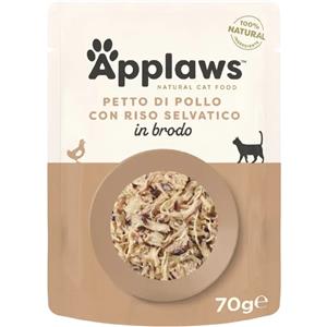 Applaws Alimento Umido per Gatti 100% Naturale - Petto di Pollo e Riso Selvatico in Brodo, 12 Buste da 70g