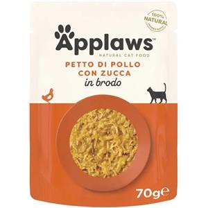 Applaws Cibo Umido Naturale per Gatti - Pollo e Zucca, 12 Buste da 70g, Senza Conservanti