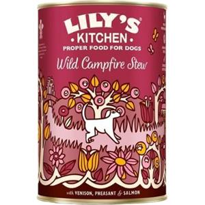 Lily's Kitchen Cibo Umido per Cani Adulto Wild Campfire Stew - Cervo, Fagiano e Salmone - Lattina da 400 g, Senza Cereali