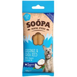 Soopa Dental Sticks per Cani - Snack Ipoallergenico al Cocco e Semi di Chia, Senza Cereali, 100g