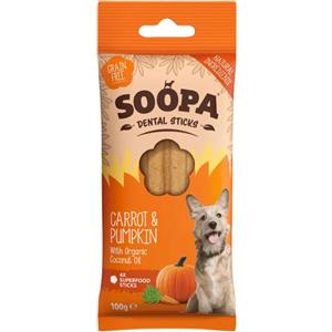 Soopa Dental Sticks - Snack ipoallergenici per cani con Carota, Zucca e Olio di Cocco - 100 g