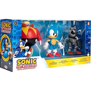 JAKKS Pacific Set di Figure Sonic The Hedgehog 30° Anniversario - Include Sonic, Dr. Eggman e Mecha Sonic da 10 cm