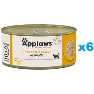 Applaws Alimento Umido per Gatti - Petto di Pollo in Brodo, 6 x 70 g, Naturale e Senza Glutine