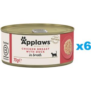 Applaws Alimento Umido per Gatti - Petto di Pollo con Anatra in Brodo, Naturale e Senza Glutine, Confezione da 6 x 70 g