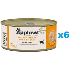 APPLAWS Alimento Umido per Gatti Adulto Pollo con Formaggio in Brodo - Multipack 6x70g