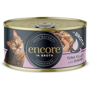 Encore Cibo Umido Naturale per Gatti - Tonno e Gamberetti, 70 g in Lattina (Confezione da 16)
