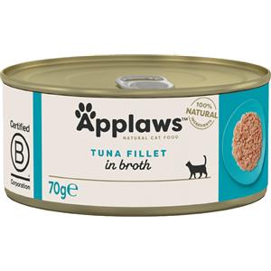 Applaws Alimento Umido per Gatti Adulto - Filetto di Tonno in Brodo, 6 x 70g, Naturale e Senza Glutine
