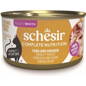 Schesir Alimento Umido Completo per Gatti - Filetti di Tonno e Pollo in Brodo, 6 x 85 g
