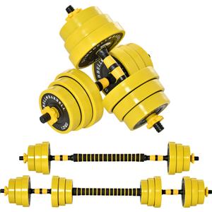 HOMCOM Set Manubri Regolabili 2 in 1 con Barra Bilanciere, Pesi fino a 20 kg, per Allenamento Casa/Palestra, in Polvere di Ferro e PP